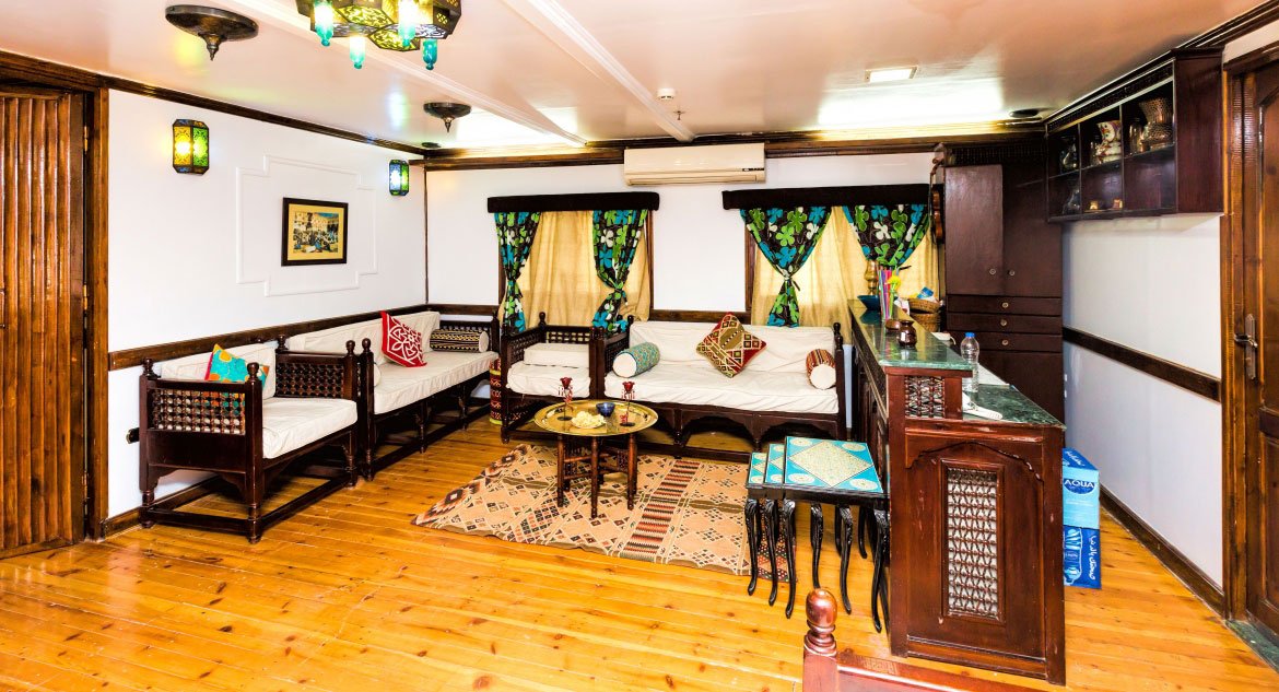 At the heart of the yacht lies its spacious sundeck, an oasis designed for pure relaxation. Stretch out under the Egyptian sun, sip a refreshing drink, or simply let your eyes wander across the mesmerizing views. Whether you seek solitude or shared moments with loved ones, the sundeck is where unforgettable memories are made.