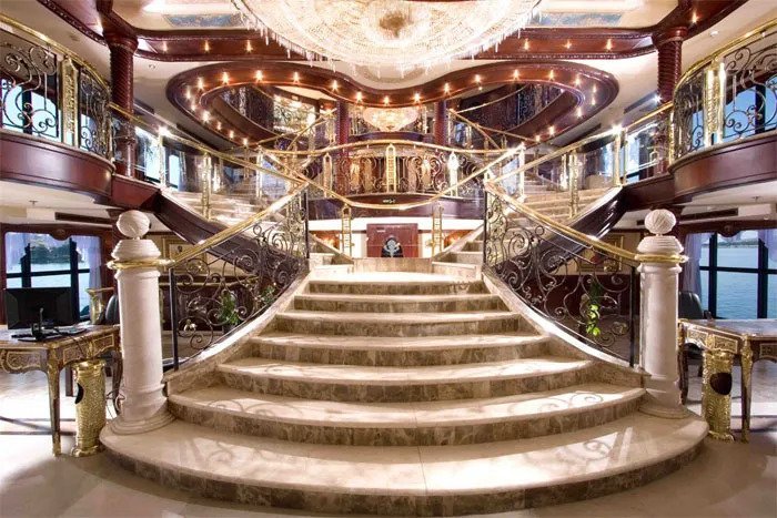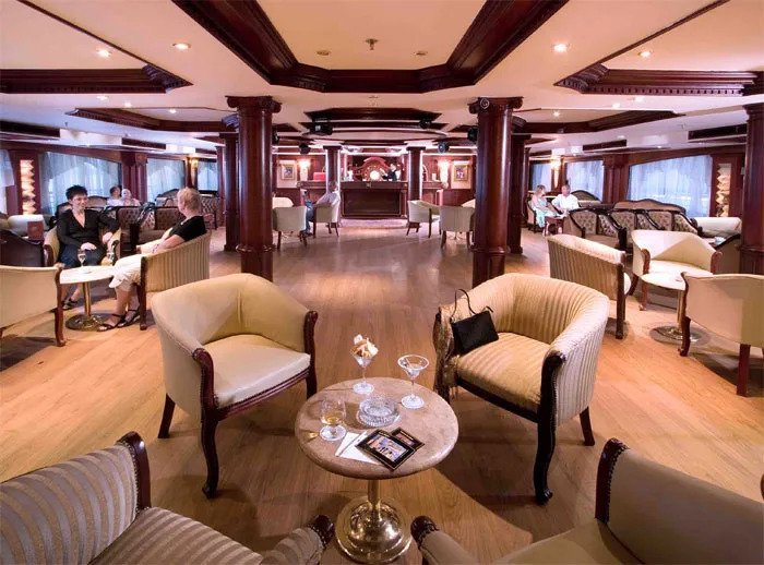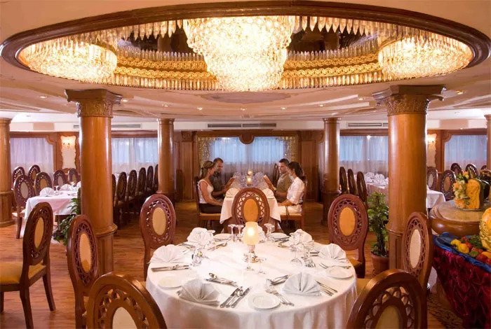 - Delicious dining in the ship’s main restaurant with panoramic views.
