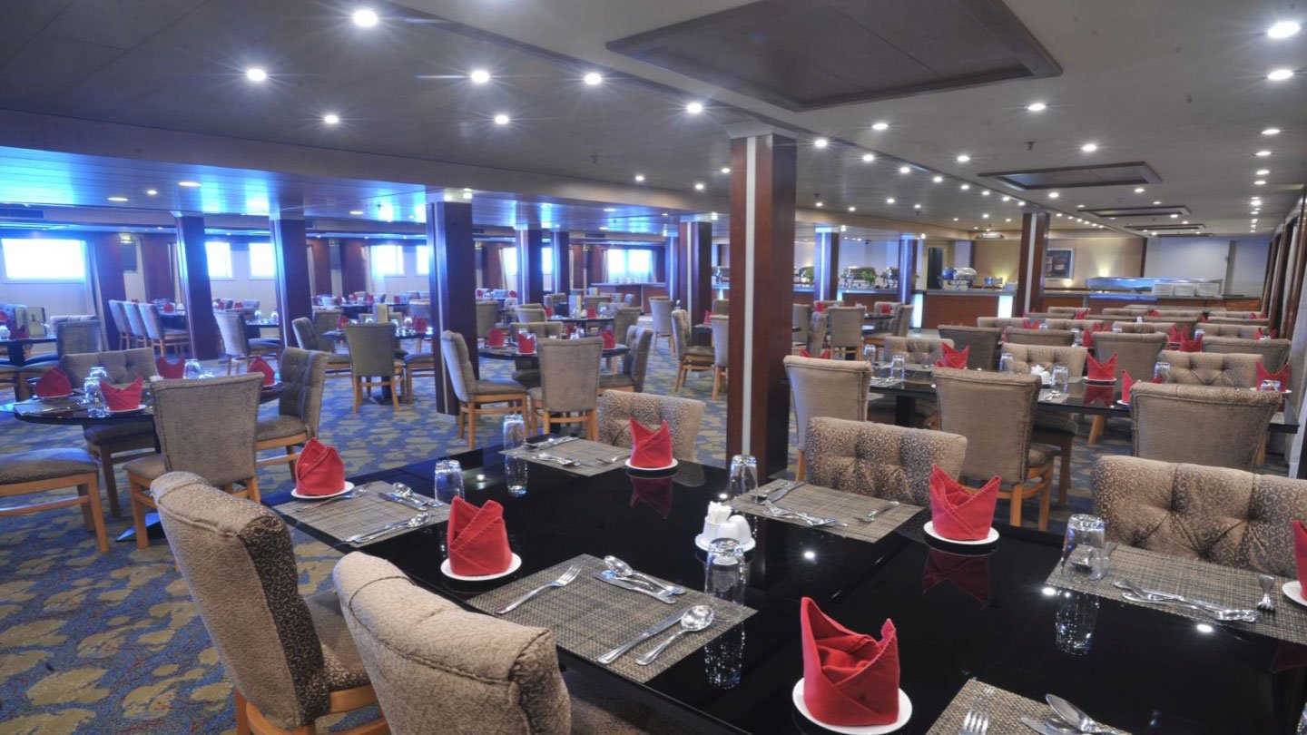 Dining onboard is an experience in itself. Each meal is a celebration of flavor, offering gourmet cuisine crafted with care, blending international favorites with the rich tastes of Egypt. Between meals, unwind in the lounge, take a dip in the pool, or enjoy curated activities that balance relaxation with discovery.