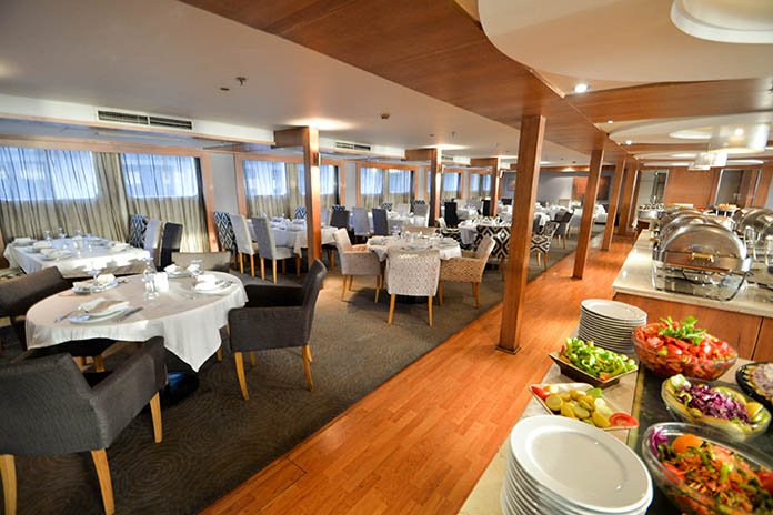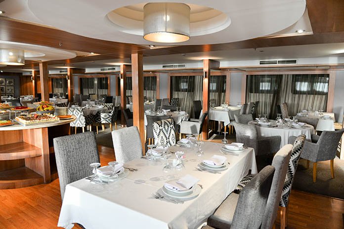 Once on board, you’ll be welcomed into a world of style and comfort. The Sabena Al Jamila boasts 66 beautifully designed double cabins and 4 luxurious suites, spread gracefully across three decks. Every cabin is a cozy retreat complete with a private bathroom, ensuring your stay is both relaxing and immersive. If you’re looking for something even more indulgent, the suites are a perfect choice—spanning 35 square meters, they come with their own spacious living rooms and kitchens, offering a touch of home while you sail along the Nile.