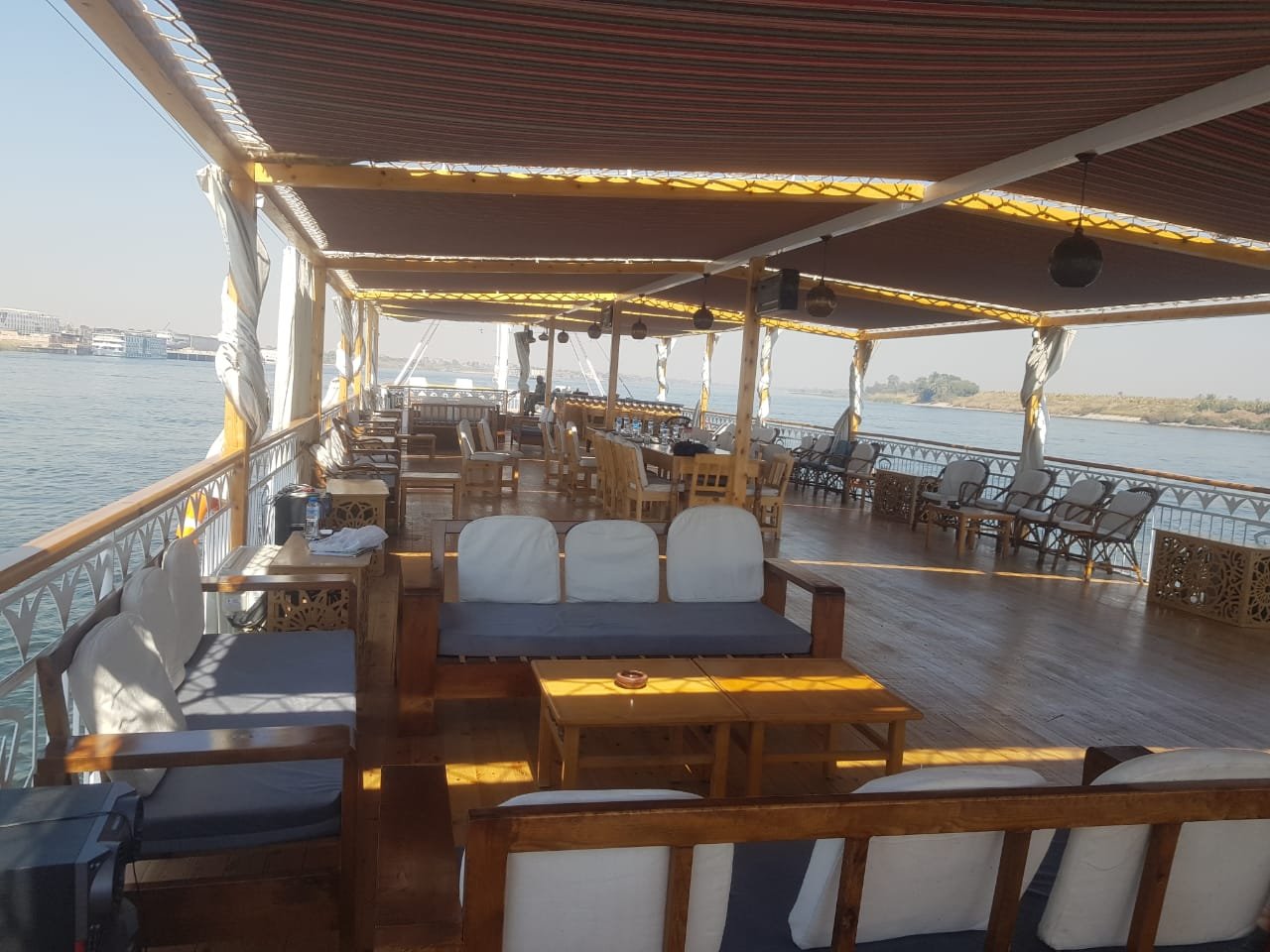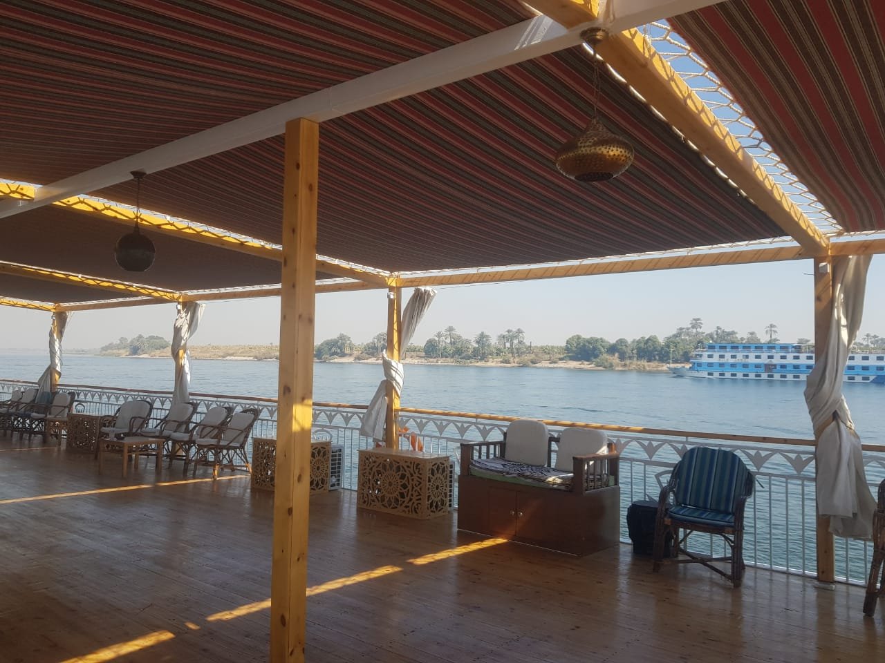 The heart of the Sacred Lotus lies in its expansive sundeck, a place that not only provides sheltered views of the breathtaking landscapes but also invites you to unwind and savor the tranquility of the Nile. It’s a space where you can bask in the warmth of the Egyptian sun or admire the starry night sky, making it the perfect setting for relaxation and reflection.
