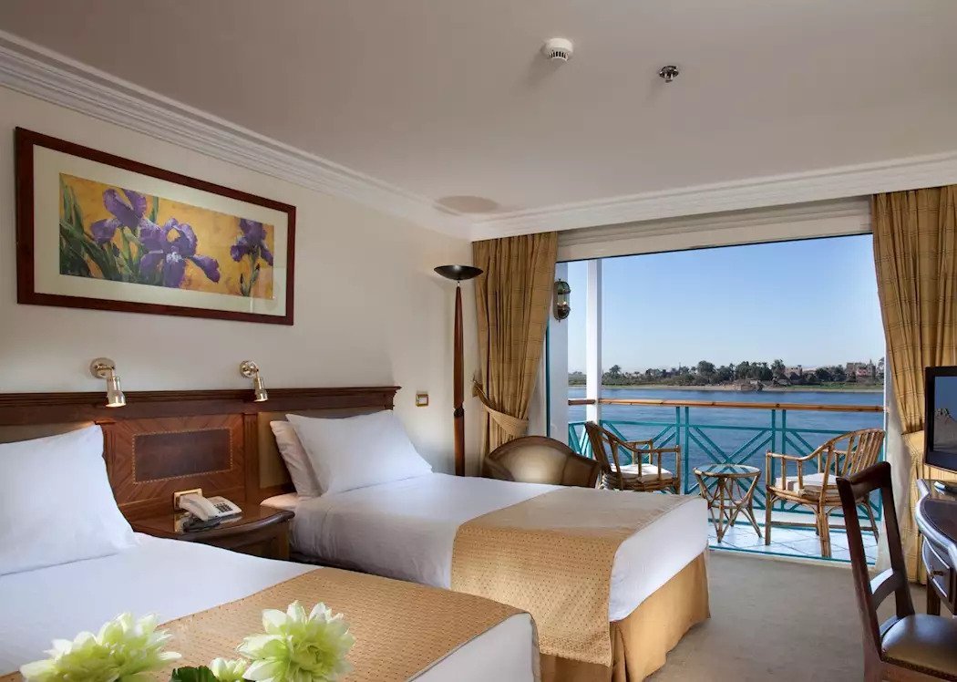 Every stateroom aboard the Moon Goddess is a masterpiece that blends modern amenities with timeless charm. It’s more than just a room—it’s a sanctuary of relaxation, where you can unwind after a day of exploring Egypt’s ancient wonders. Whether you’re enjoying the comfort of your space or taking in the mesmerizing views of the Nile, every moment aboard this ship is designed to make you feel at ease.
